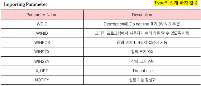 - AUTO_CMD_1, AUTO_CMD_2, INBUF Import Parameter Description 과 같이 Parameter를 사용하지 말아야 합니다.