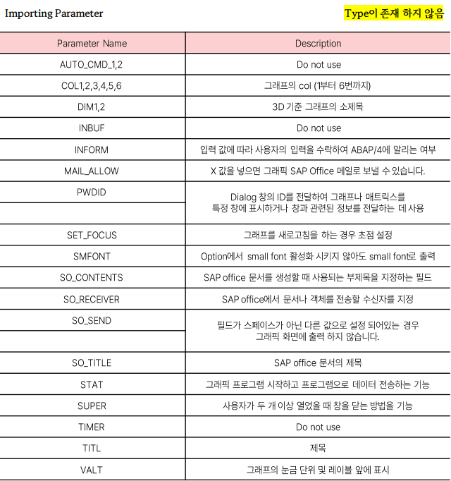 위 코드는 그래프를 출력할 데이터로 해당 Function을 활용 하실 때에는 아래의 코드에서 그래프를 그릴 Internal table를 이용하시면됩니다.