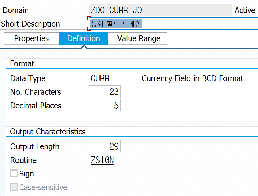 도메인에서 변환 루틴(Routine)으로 사용되거나 ALV FieldCatalog에서 쓰이기 위해서는