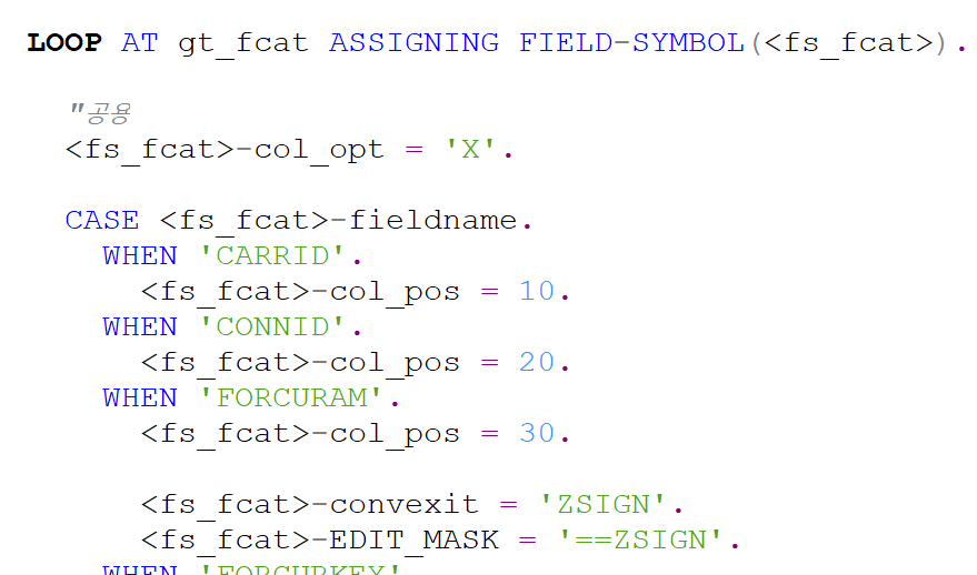 이런 형식으로 적용하게 되면 ALV에서 출력하기 직전에 값이 변환되어 보여집니다!!